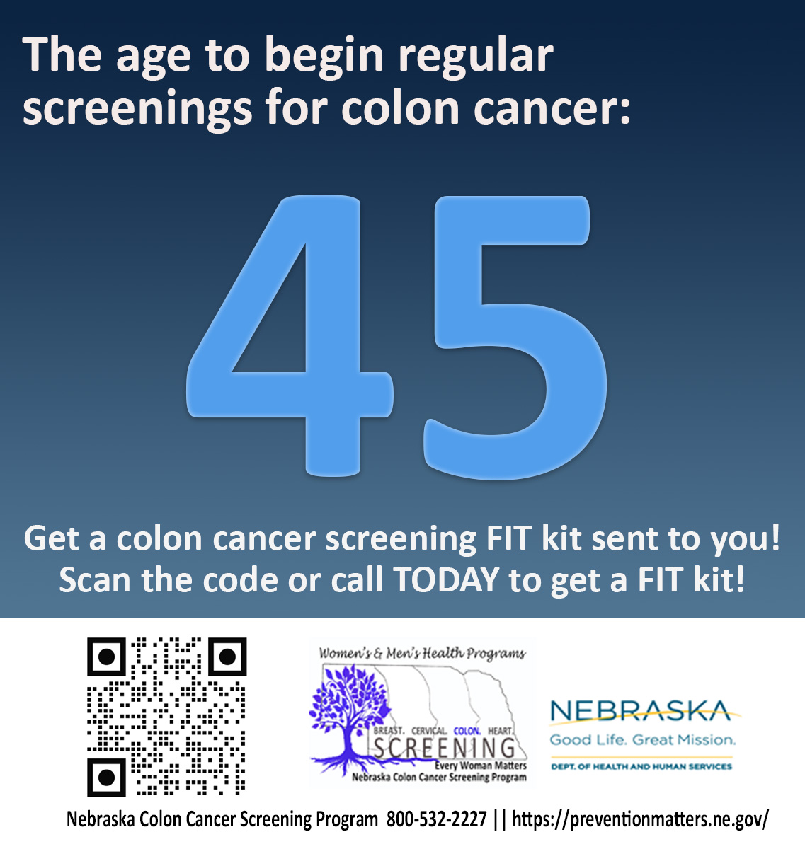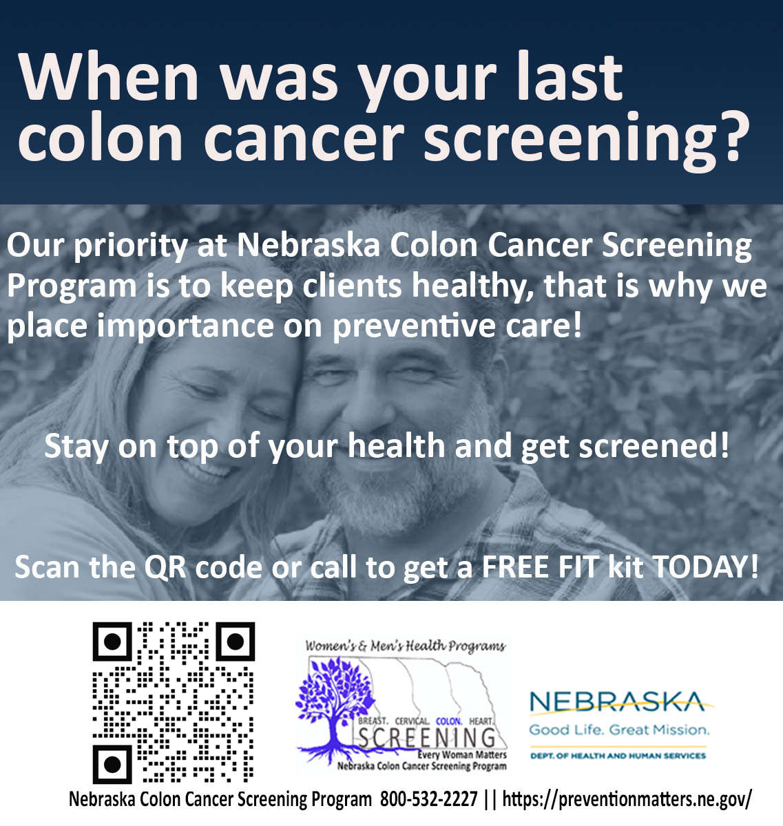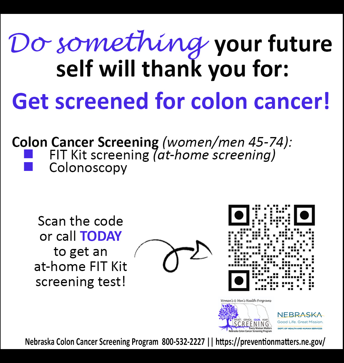Colorectal cancer is the second leading cancer killer in the United States, and Nebraska ranks 41st for screening rates, but we can do better. Get screened today!